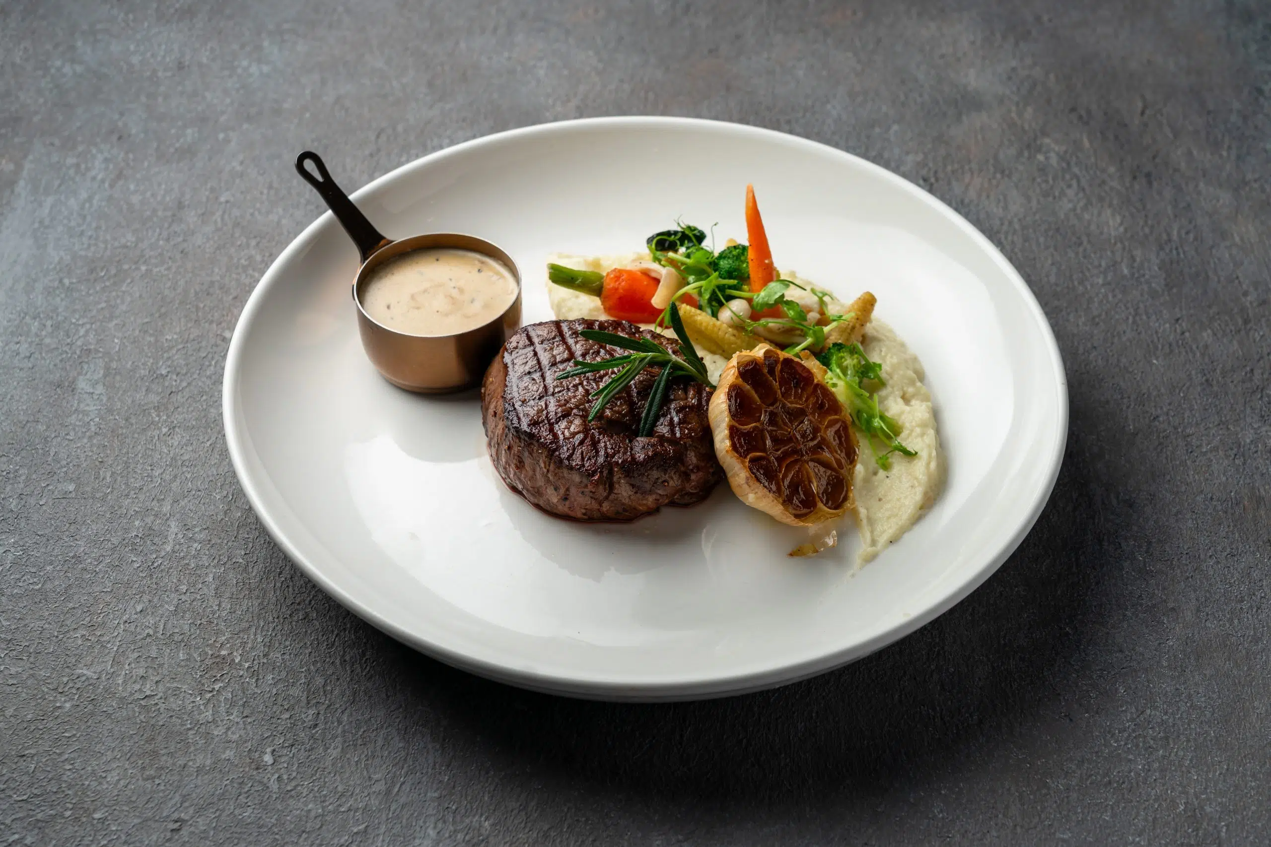 A+ Australian beef Rib Eyes, Tenderloin, and marinated chicken for the ultimate steakhouse experience.