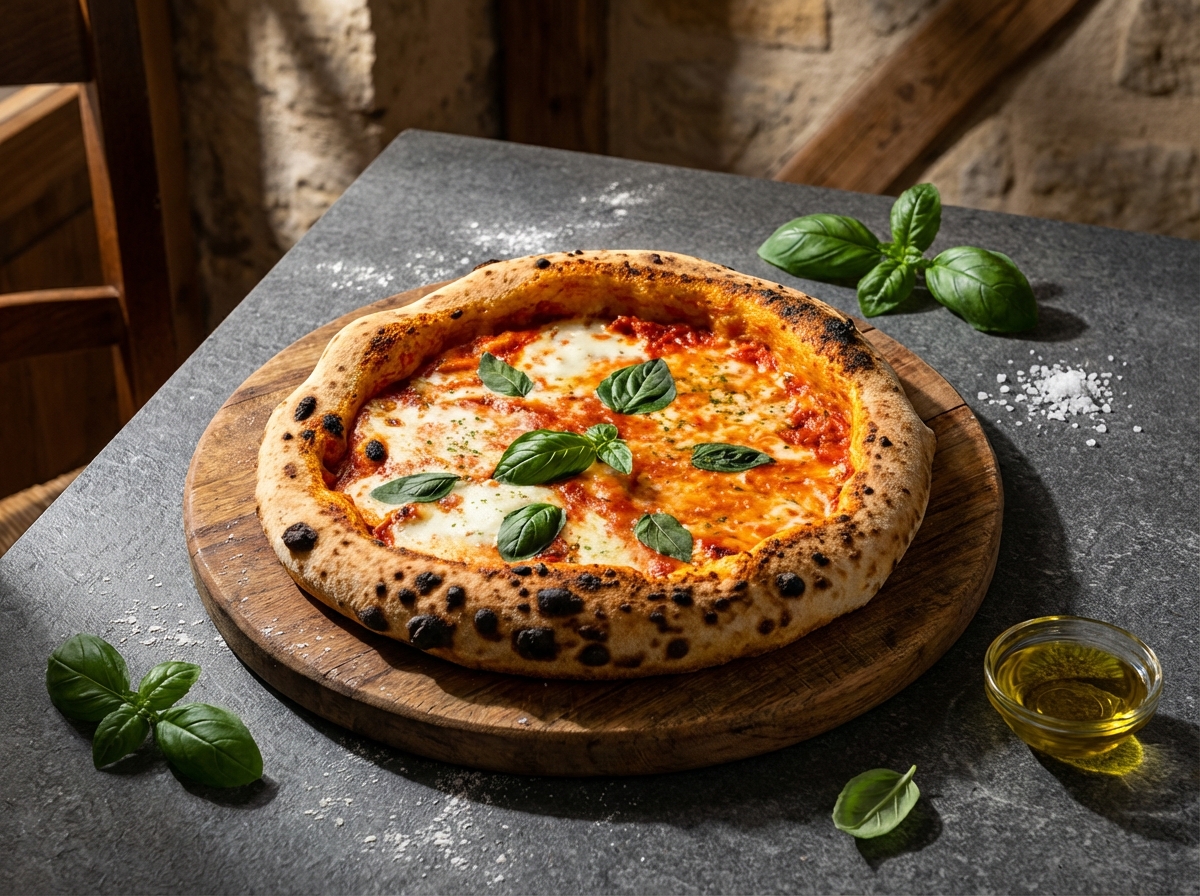 The process begins with mixing the flour with water, yeast, and salt, followed by a slow fermentation. This method allows the dough to develop a rich flavor and perfect texture. When baked, it produces a crust that is crisp yet tender, with the signature leopard spots that define true Neapolitan pizza.